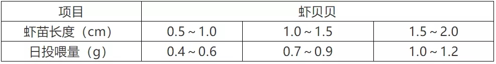 3、本表投喂量根据天气、水温、水质、虾苗健康状况及摄食情况来调整。